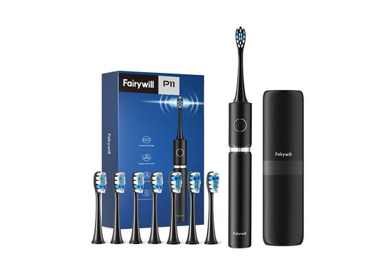 FAIRYWILL Escova de Dentes Sonic com Conjunto de Cabeça e Estojo FW-P11 - Preto