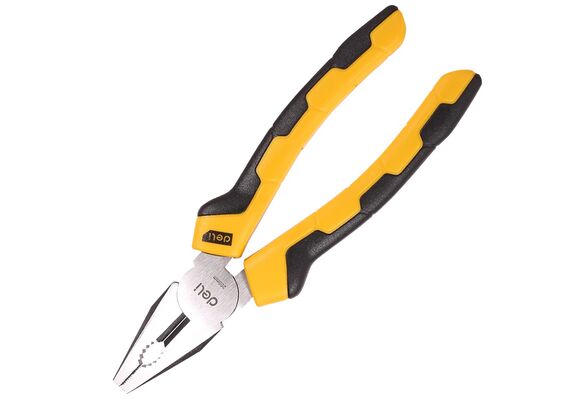 Alicates de combinação universal são uma das ferramentas mais populares. Graças às suas mandíbulas de formato especial, têm várias funções. A extremidade plana pode ser usada para segurar e esmagar, e a borda afiada é boa para cortar e dobrar. Forjados em aço carbono de alta qualidade - eles se destacam por sua impressionante resistência e longa vida útil. Os alicates são equipados com arestas de corte endurecidas de alta frequência que possuem alta dureza de 54-62HRC e alta capacidade de corte. O cabo ergonômico de duas cores feito de material ecologicamente correto adapta-se bem à mão e evita a fadiga mesmo durante o uso prolongado.